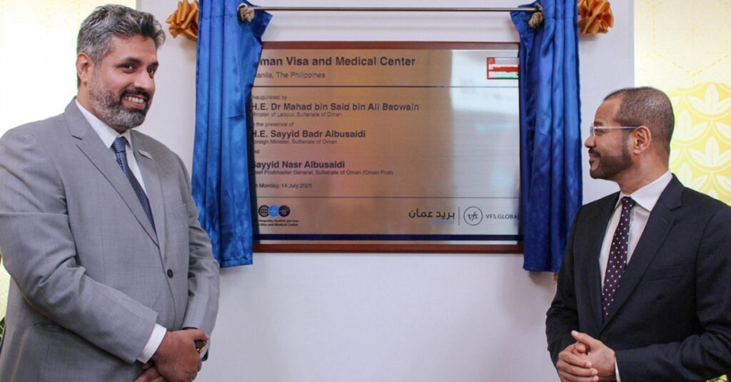 MANILA — Oman Visa and Medical Examination Center was inaugurated in the Philippine capital, Manila, as part of a strategic initiative by the Sultanate of Oman to streamline and regulate work visa procedures in accordance with employment contracts approved under Omani labour law.
